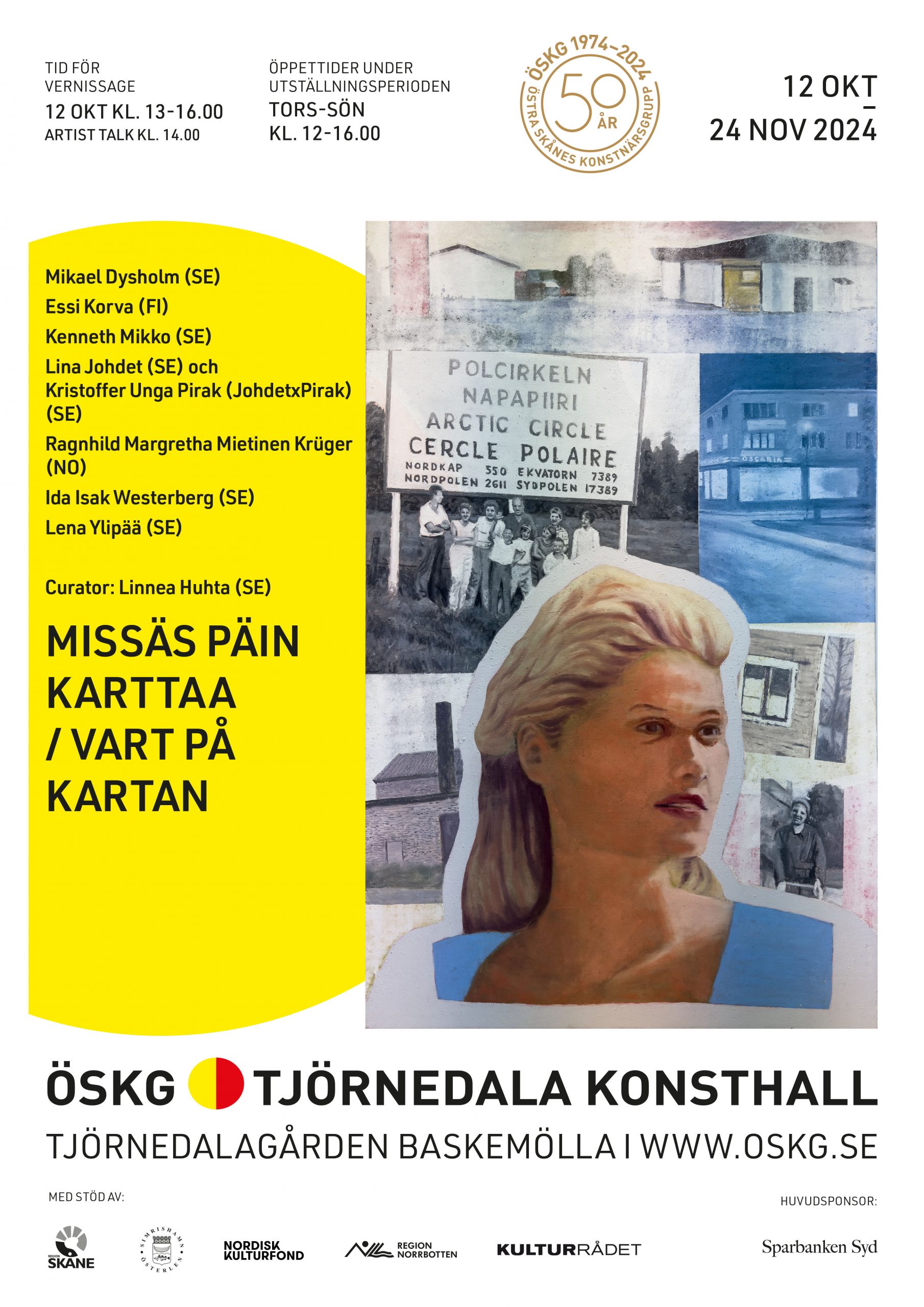 Oändliga myrar och öde vildmark har länge varit en del av bilden av Norrbotten och Tornedalen specifikt. Ett kulturellt underutvecklat område utifrån, men 98245 kvadratkilometer, flera språk och nationella minoriteter och urfolk i samspråk insisterar på motsatsen – inifrån. Det söta vävs ihop med det salta, i en normkreativ gestaltning av plats, miljö, arv och konsten att bevara med uttrycket att berätta. Temat för utställningen roterar allmänmänskligt kring platsen, hållbarhet och arv. Idén syftar till att med konstnärerna utforska platsens relativitet och betydelse i tid och rum, för språk och folk, centrum, periferi, identitet, minoritet och majoritet. Vart på kartan, med betoning på vart, förhåller sig till frågor om riktning och rörelse. Faktiska platser men också platser som inte går att googla, platser som går att känna, kulturell kartritning, glesbygder och tillhörighet oberoende plats på jorden.